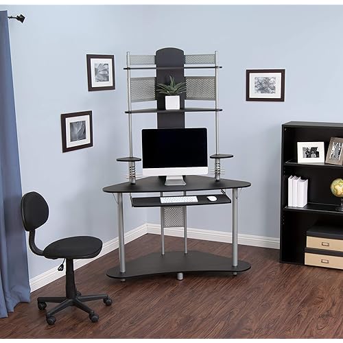 Computer desk corner pc table workstation home office 2 drawers bookshelf small.